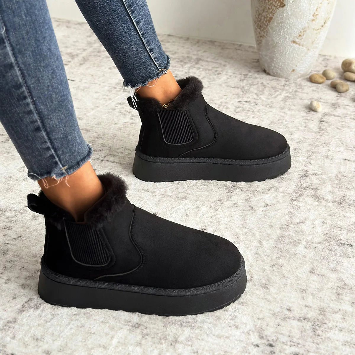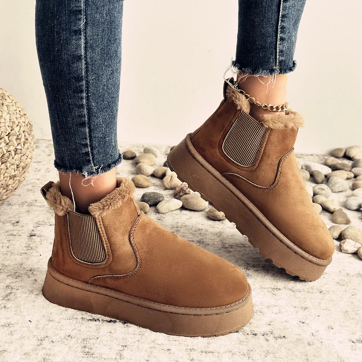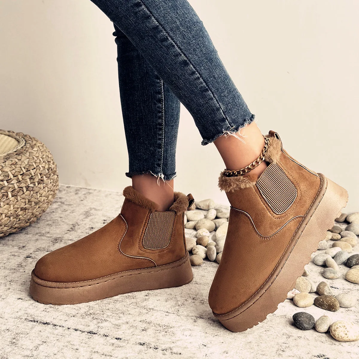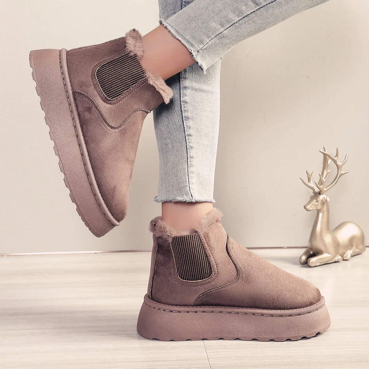 SPECIFICATIONSBrand Name: NONEDepartment Name: AdultFlats Type: LoafersGender: WomenHigh-concerned chemical: NoneInsole Material: PlushOccasion: DailyOrigin: Mainland ChinaOutsole Material: RubberPattern Type: SolidSeason: WinterToe Shape: Round ToeUpper Material: FurUpper fixing method: stitchingWhether waterproof: NoWhether with metal toe cap: No Easy Wear Designed for convenience, these boots can be easily slipped on and off, making...