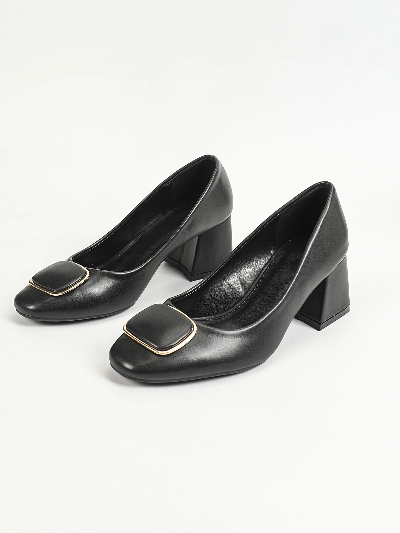 Elegant commuting OL fashionable shallow mouth square buckle thick heel women's single shoes
