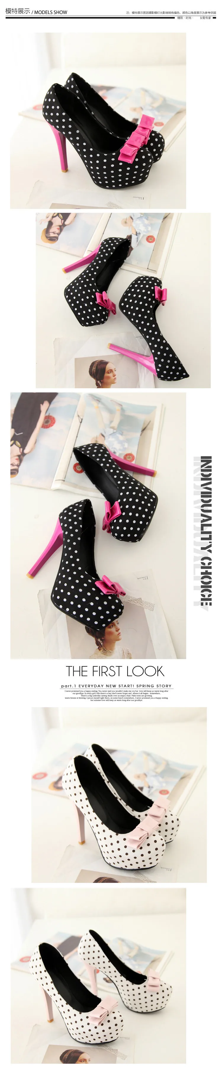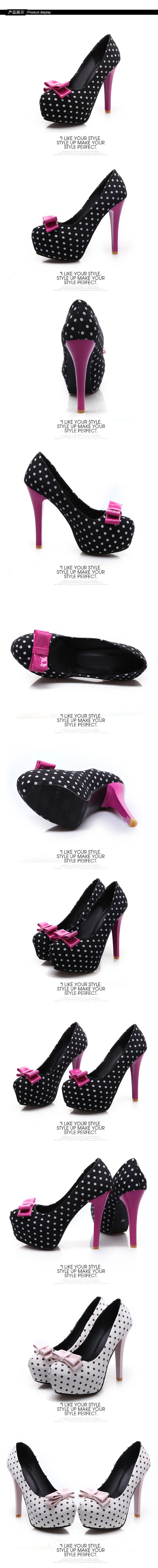 SPECIFICATIONSBrand Name: NONE,VoesneesDepartment Name: AdultFashion Element: Butterfly-knotFashionable element: Butterfly-knotFit: True to SizeGender: WomenHeel Height: Super High (8CM - Up)Heel Type: Thin HeelsHeels Height: 12CMHigh-concerned chemical: NoneInsole Material: PUItem Type: PumpsModel Number: V4305Occasion: PartyOrigin: Mainland ChinaOutsole Material: RubberPattern Type: Polka DotPlatform: 4CMPlatform Height: 3-5cmPump Type: BasicSeason: Spring/AutumnSize: 34 35 36 37...